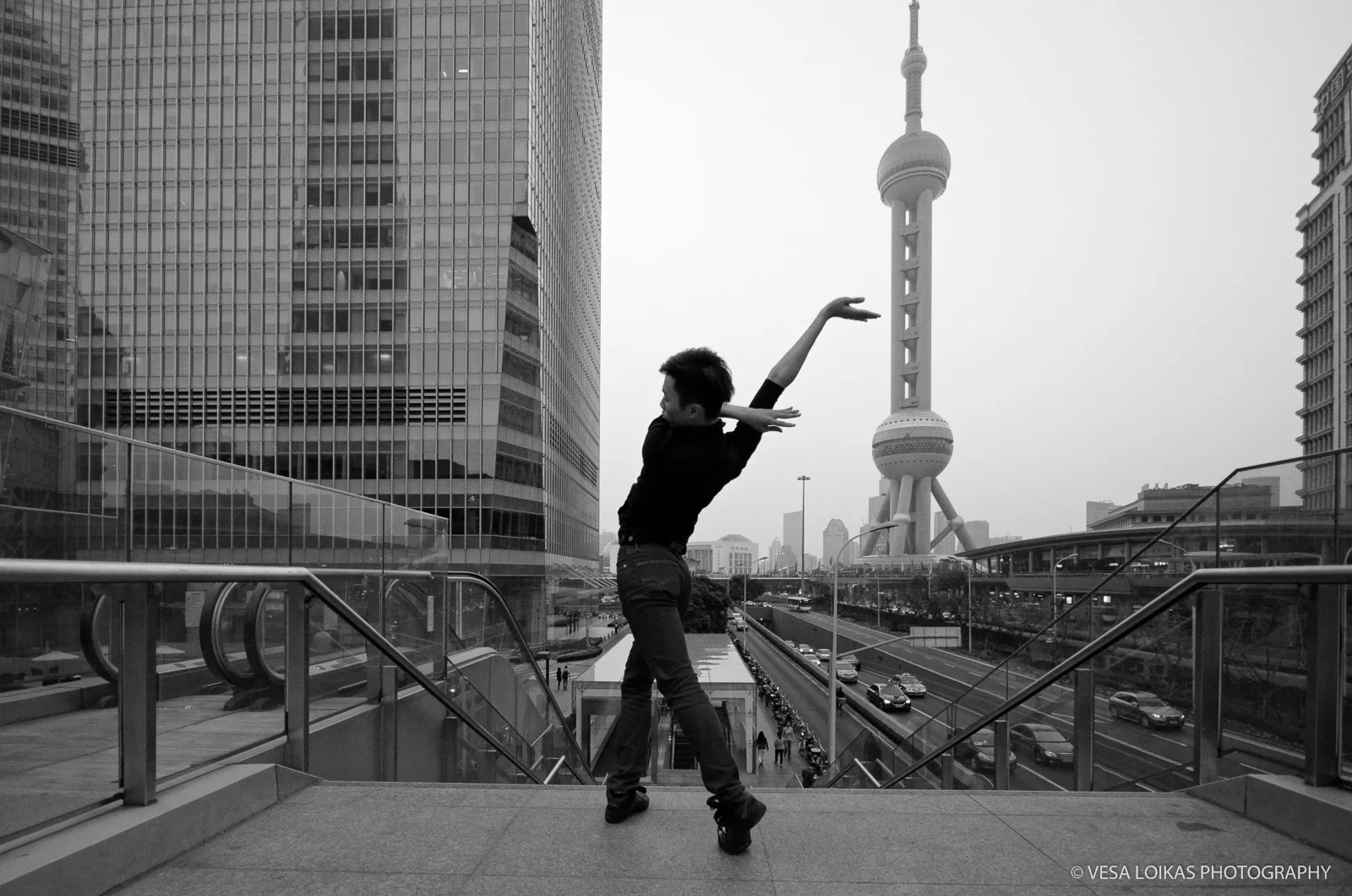 “These collaborative photo shoots are a part of my photography series of improvised modern dance using streets and other public spaces as stages. In the series I explore the interactions, relationships and juxtapositions formed by landscape, architecture and people within the same environment.”